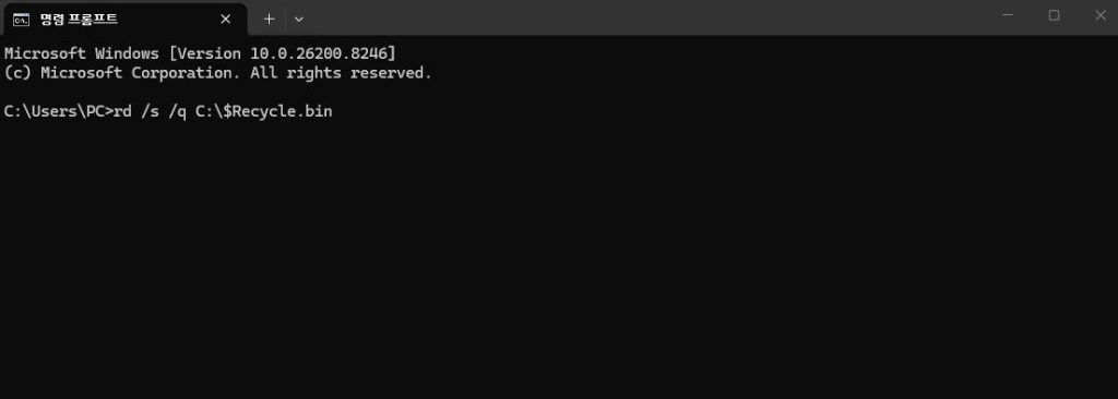 1. 관리자 권한으로 휴지통 폴더 강제 초기화하기 (CMD)